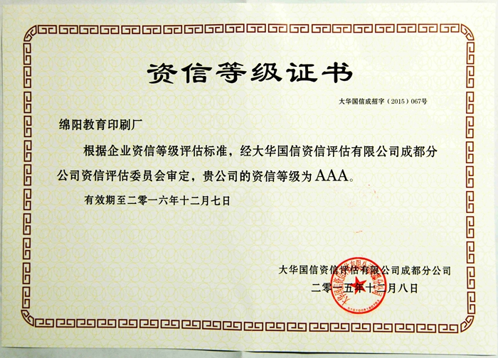 資信等級證書