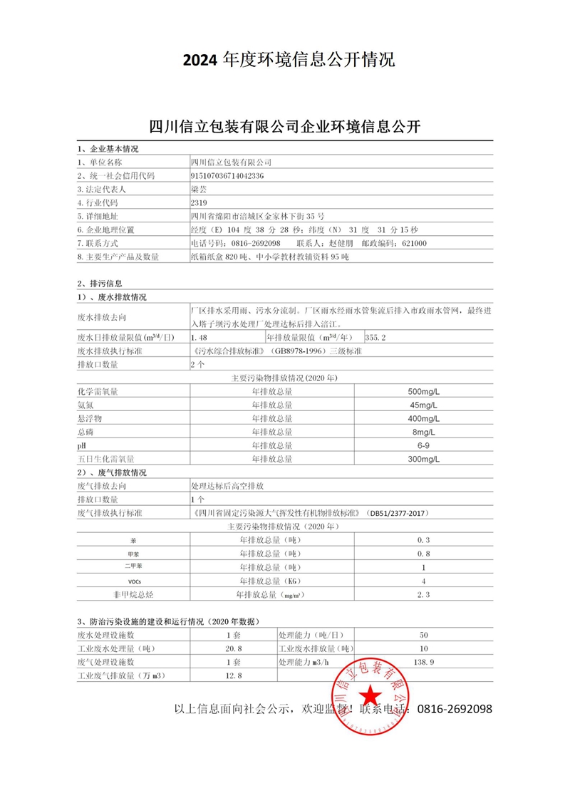 四川信立包裝有限公司企業(yè)環(huán)境信息公開(kāi)